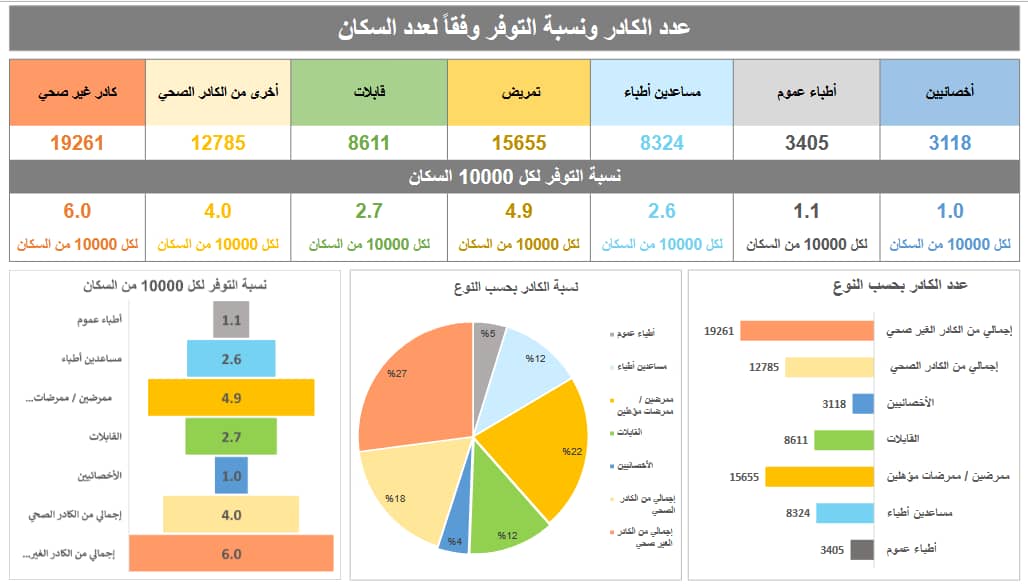وتُعد أمانة العاصمة الأعلى كثافة سكانية في البلاد، حيث يبلغ عدد سكانها 3,869,414 نسمة، وتضم أكبر عدد من الكوادر الصحية بواقع 11,694 موظفًا. في المقابل، تُسجل محافظة سقطرى أدنى كثافة سكانية بـ 72,422 نسمة، ويعمل فيها 289 فقط من الكادر الصحي، ما يبرز التفاوت الكبير في توزيع الموارد البشرية الصحية بين المحافظات.